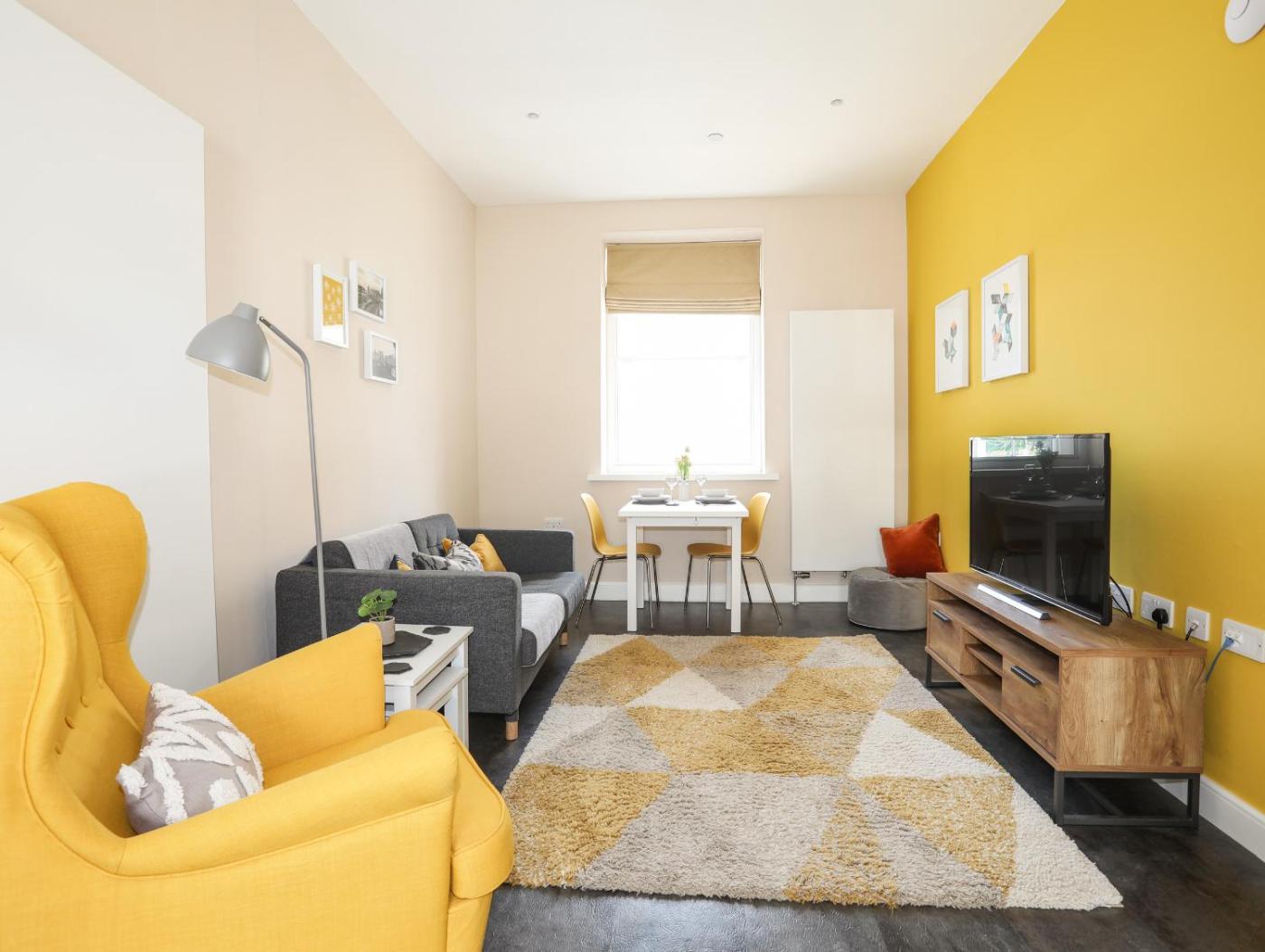 Apartment. This spacious apartment includes 1 bedroom, a seating area with a sofa and 1 bathroom with a walk-in shower. Meals can be prepared in the kitchen, which is fitted with a stovetop, a refrigerator, a dishwasher and an oven. The apartment offers a washing machine, a dining area, a wardrobe, an electric kettle, as well as a TV. The unit has 1 bed.