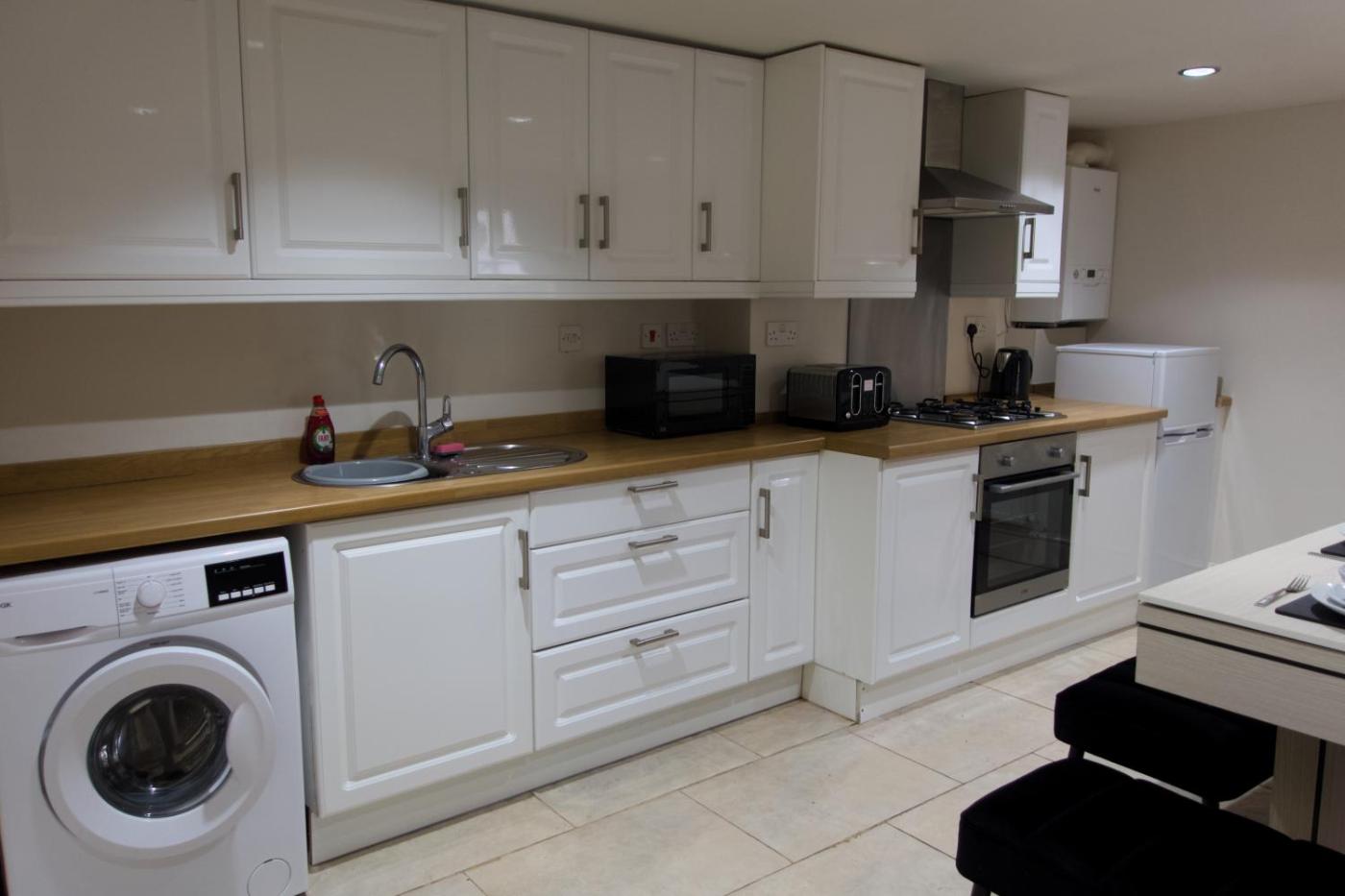 Two-Bedroom Apartment. In the kitchen, guests will find a stovetop, a refrigerator, an oven and a microwave. The spacious apartment offers a washing machine, a private entrance, a seating area, a flat-screen TV with streaming services, as well as a quiet street view. The unit offers 3 beds.