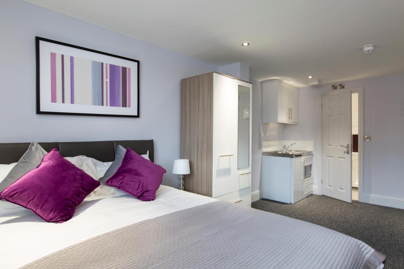 At County Courts studio apartment, rooms come with a desk and a flat-screen TV.rooms include a kettle, while selected rooms here will provide you with a kitchenette with a microwave, a toaster and a fridge.rooms include a wardrobe.