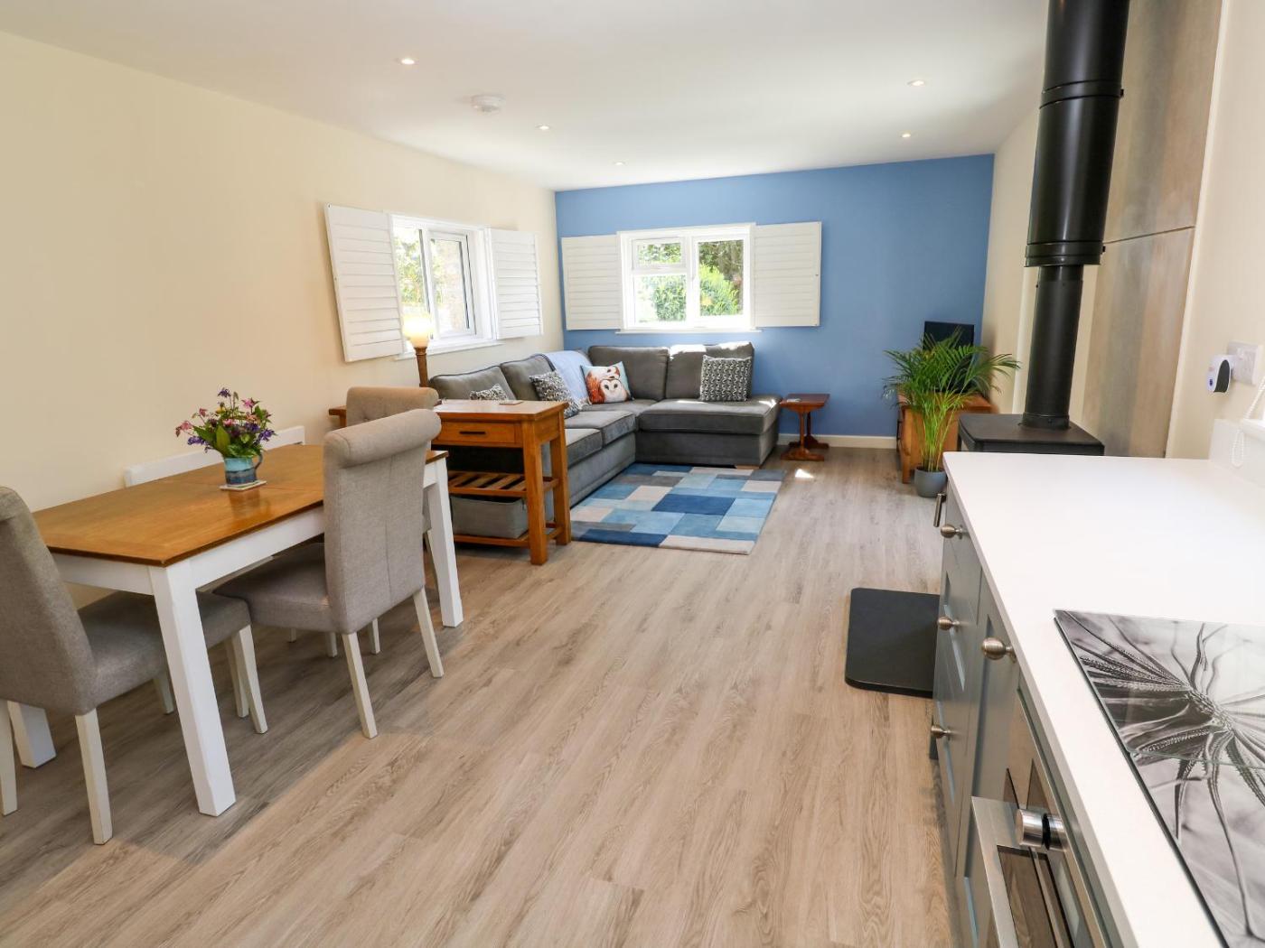 Holiday Home. The fireplace is a top feature of this holiday home. This holiday home comes with 1 bedroom, a seating area with a sofa and 1 bathroom with a walk-in shower. Guests can make meals in the kitchen that features a stovetop, a refrigerator, a dishwasher and an oven. The holiday home features a dining area, a wardrobe, an electric kettle, heating and a TV. The unit has 1 bed.