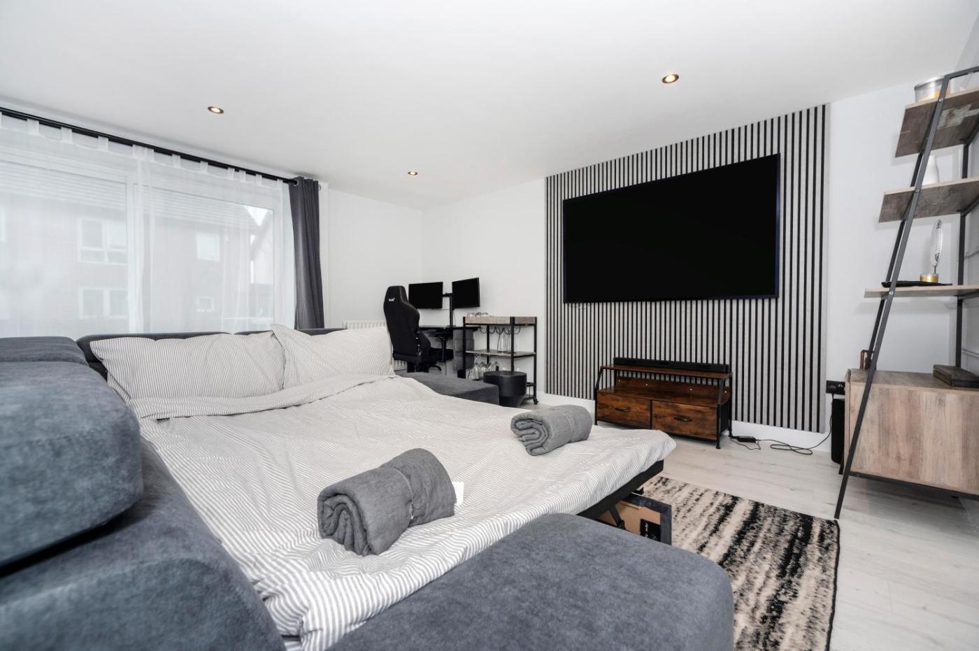 Situated in Gravesend in the Kent region, Stunning, Newly Refurbished 1-Bedroom Flat in Gravesend has a balcony. Both free WiFi and parking on-site are available at the apartment free of charge. The property is non-smoking and is located 10 km from Bluewater.