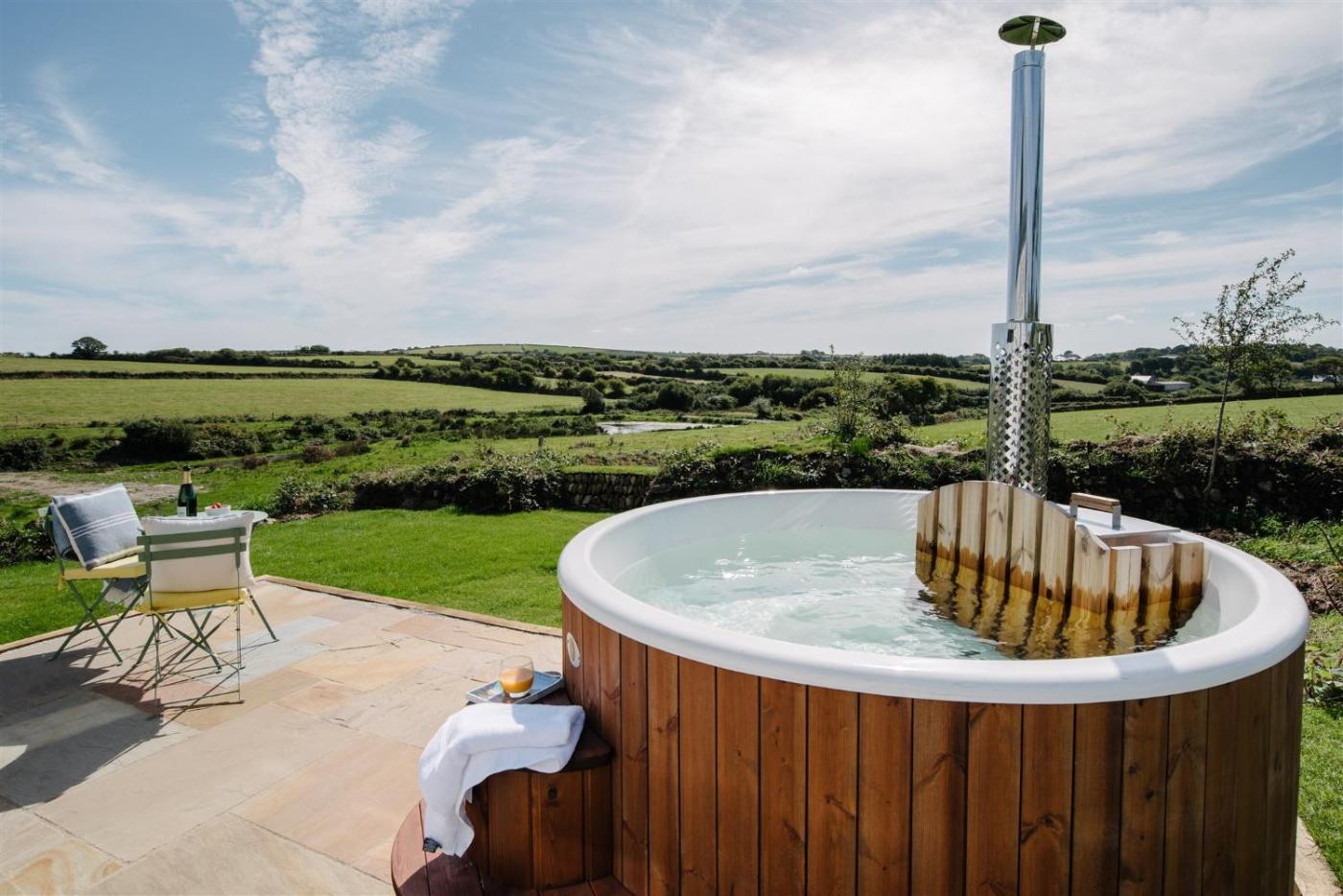 Featuring a hot tub, Shepherds Hut at Chenhall Farm isin Helston. A hot tub is available for guests. There is a sun terrace and guests can make use of free WiFi and free private parking.