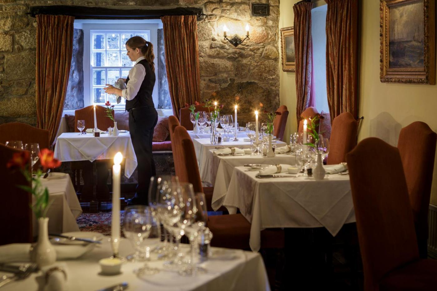 Guests can retreat to the dungeon bar before or after dinner for a Scillonian real ale and a wide variety of wines and spirits.