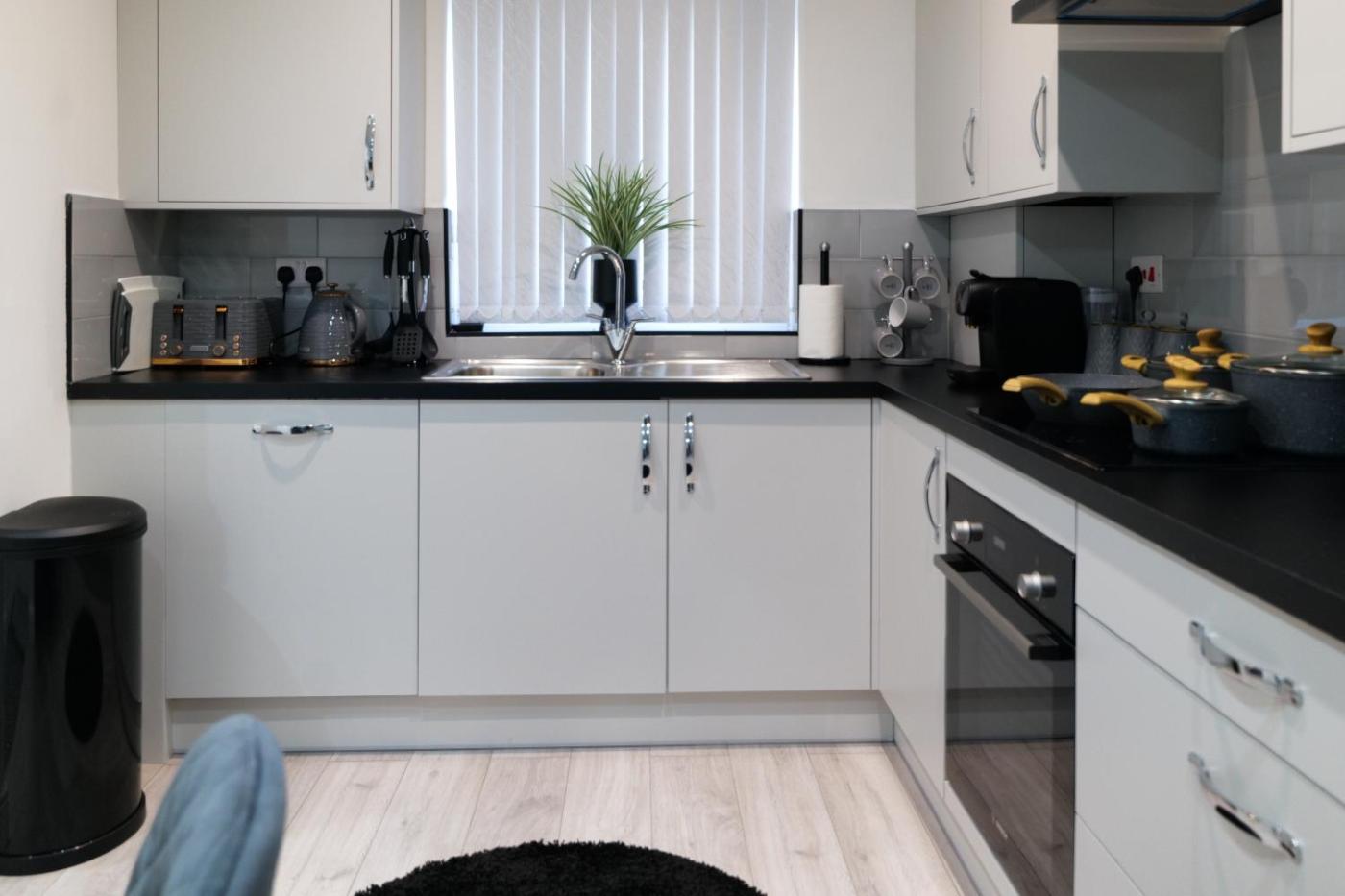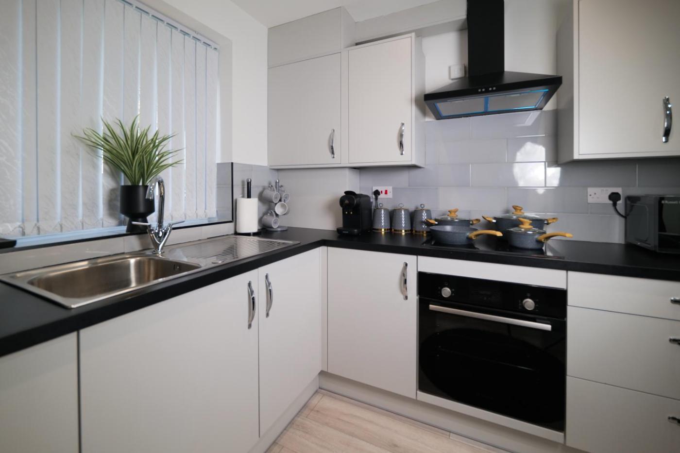 Downtown Cozy House in Manchester has 3 bedrooms, a fully equipped kitchen with a dishwasher and an oven, a washing machine, and 3 bathrooms with slippers and a hair dryer. A flat-screen TV is offered.