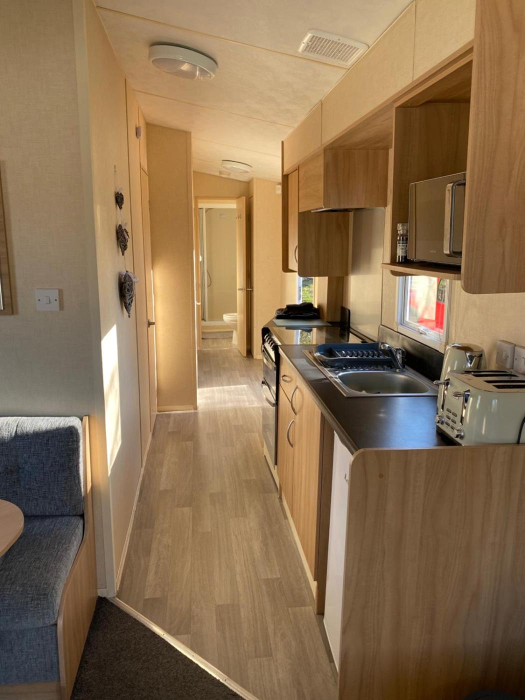 The 3-bedroom holiday park is fitted with a living room with a flat-screen TV, a fully equipped kitchenette with an oven and microwave, and 1 bathroom with shower. There is also a seating area and a fireplace.