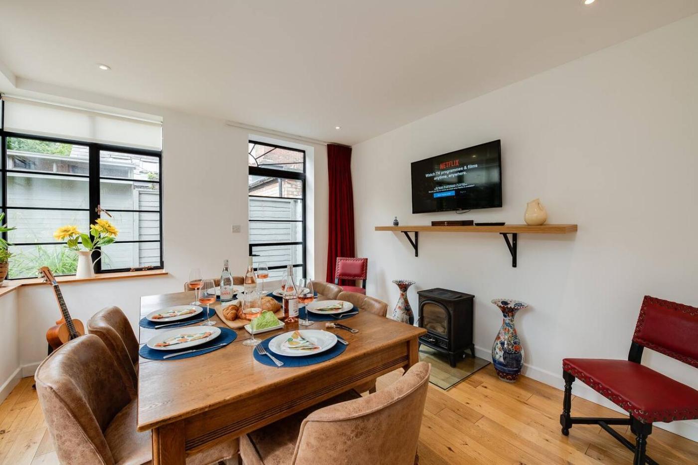 Apartment - Ground Floor. The fireplace is a top feature of this apartment. Featuring free toiletries, this apartment includes a shared bathroom with a walk-in shower and a hairdryer. Guests will find a stovetop, a refrigerator, a dishwasher and kitchenware in the well-fitted kitchen. The apartment also includes a barbecue. The spacious apartment features a washing machine, a seating area, a dining area, a flat-screen TV with streaming services, as well as garden views. The unit has 3 beds.