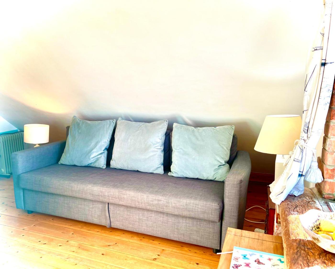 One-Bedroom House. Boasting a private entrance, this holiday home also features 1 separate bedroom, 1 bathroom with a bath, a kitchen and a dining area. The fully equipped kitchen has a stovetop, a refrigerator, an oven and a microwave. The holiday home features a tea and coffee maker, a seating area, a high chair for children, a flat-screen TV, as well as sea views. The unit has 1 bed.
