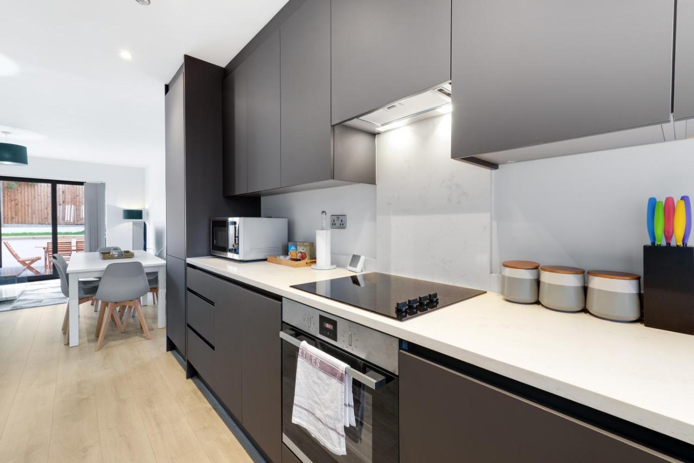 The holiday home provides guests with a patio, garden views, a seating area, a flat-screen TV, a fully equipped kitchen with an oven and a microwave, and a private bathroom with shower and a hair dryer. A toaster, a fridge and stovetop are also provided, as well as a kettle. The units include bed linen.