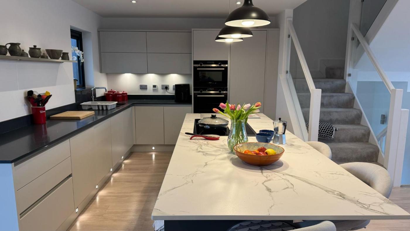 Four-Bedroom House. This spacious holiday home includes 1 living room, 4 separate bedrooms and 3 bathrooms with a bath and a shower. The fully equipped kitchen has a stovetop, a refrigerator, a dishwasher and an oven. The holiday home offers a washing machine, a private entrance, a tea and coffee maker as well as a terrace with garden views. The unit has 5 beds.