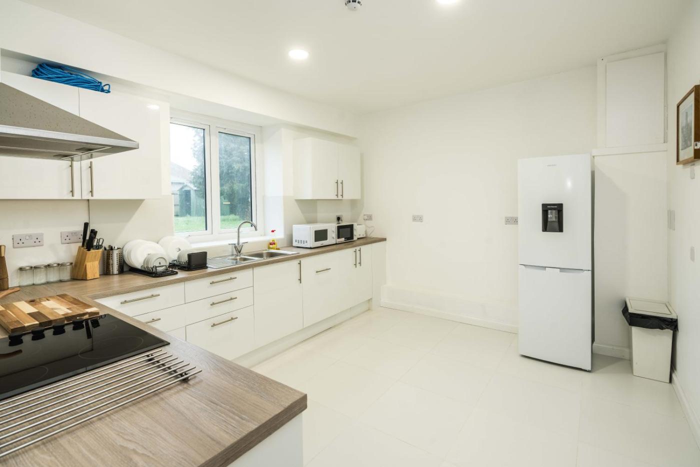 Eight-Bedroom House. This holiday homes standout feature is the hot tub. This spacious holiday home is comprised of 2 living rooms, 8 separate bedrooms and 10 bathrooms with a bath and free toiletries. In the kitchen, guests will find a refrigerator, a dishwasher, an oven and a microwave. The holiday home offers a flat-screen TV, a washing machine, a tea and coffee maker, a seating area as well as garden views. The unit offers 9 beds.