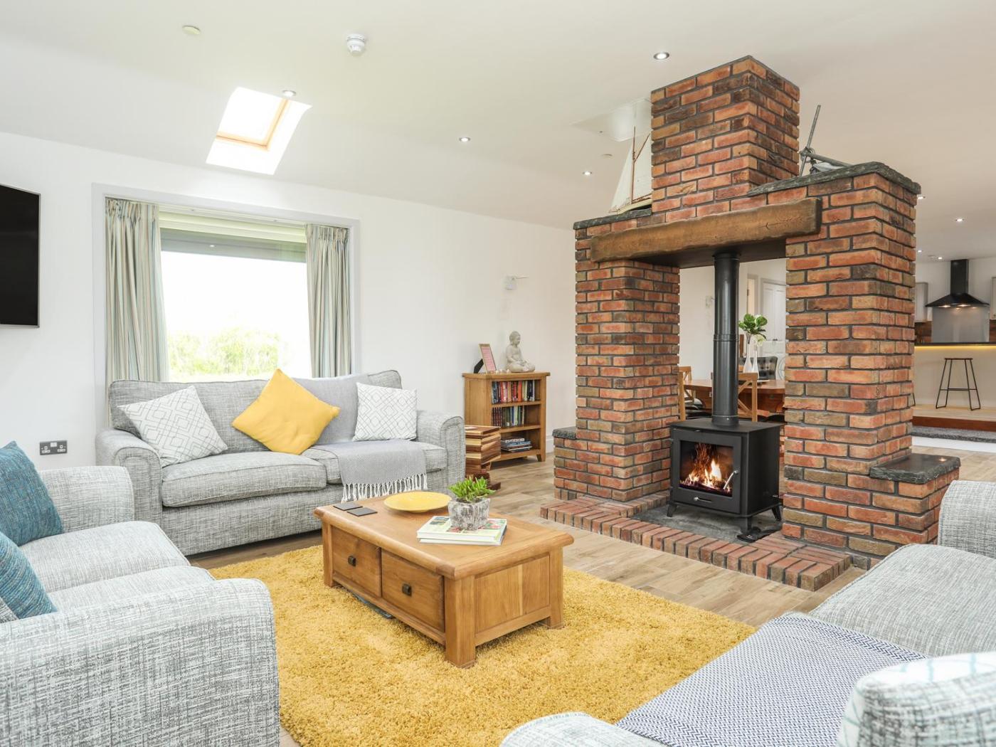 Holiday Home. The fireplace is the standout feature of this holiday home. This spacious holiday home comes with 3 bedrooms, a seating area with a sofa and 4 bathrooms with a shower. In the well-equipped kitchen, guests will find a stovetop, a refrigerator, a dishwasher and a microwave. Among the room amenities are a washing machine, a dining area and a wardrobe as well as sea views. The unit has 7 beds.