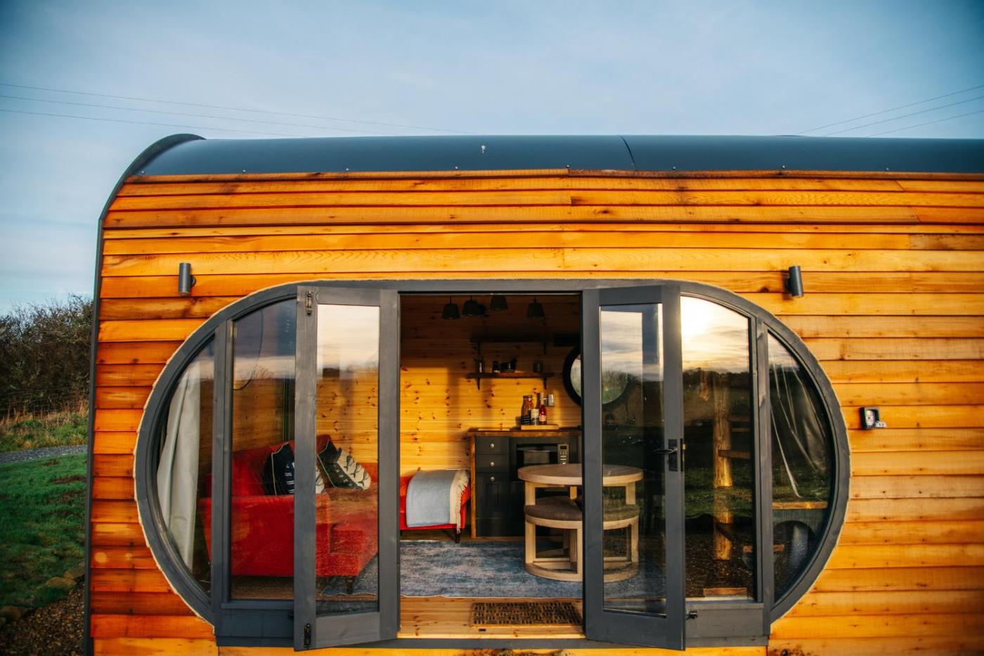 Holiday Home. The hot tub is a top feature of this holiday home. This holiday home comes with 2 bedrooms, a seating area with a sofa and 1 bathroom with a walk-in shower. The well-fitted kitchen has a stovetop, a refrigerator, a microwave and an electric kettle. The holiday home features a dining area, a wardrobe, a high chair for children as well as heating. The unit has 2 beds.