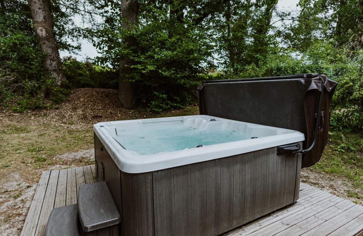 Holiday Home. This luxurious holiday home features a hot tub, a sauna and a fireplace. This spacious holiday home includes 3 bedrooms, a seating area with a sofa and 2 bathrooms with a walk-in shower. The fully equipped kitchen has a stovetop, a refrigerator, a dishwasher and an oven. The holiday home offers a dining area, a wardrobe, an electric kettle, a high chair for children, as well as a TV. The unit has 5 beds.
