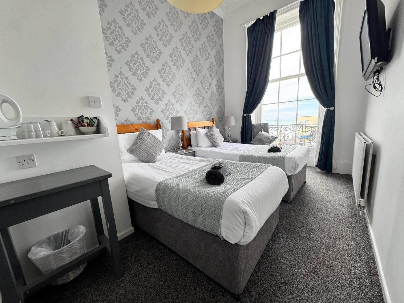 Silver Seaview Twin. Featuring free toiletries, this twin room includes a private bathroom with a shower and a hairdryer. This twin room has an electric kettle, heating, a flat-screen TV and sea views. The unit has 2 beds. ;