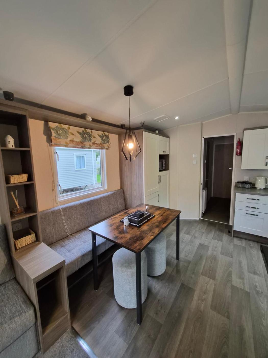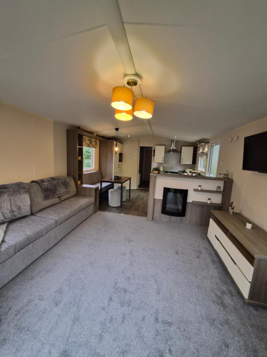 Caravan. The fireplace is a top feature of this mobile home. Boasting a private entrance, this mobile home comes with 1 living room, 2 separate bedrooms and 2 bathrooms with a shower. The well-equipped kitchen has a stovetop, a refrigerator, kitchenware and an oven. The mobile home features a flat-screen TV with streaming services, a seating area, a dining area, a wardrobe as well as garden views. The unit has 4 beds.